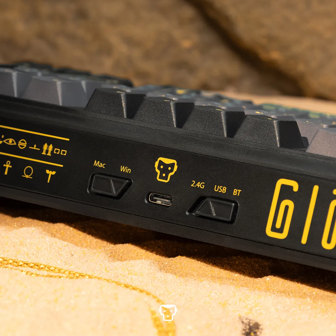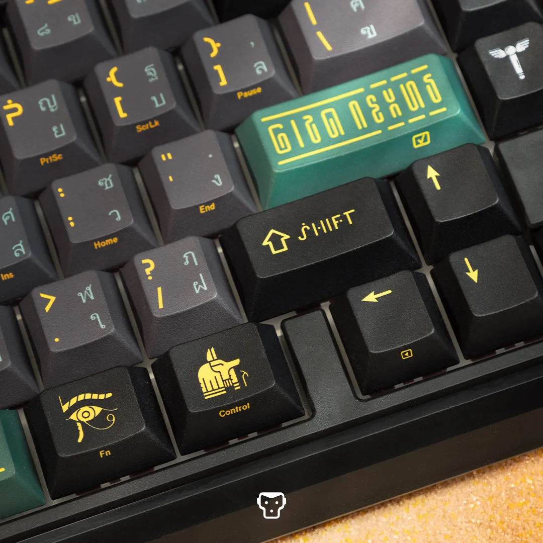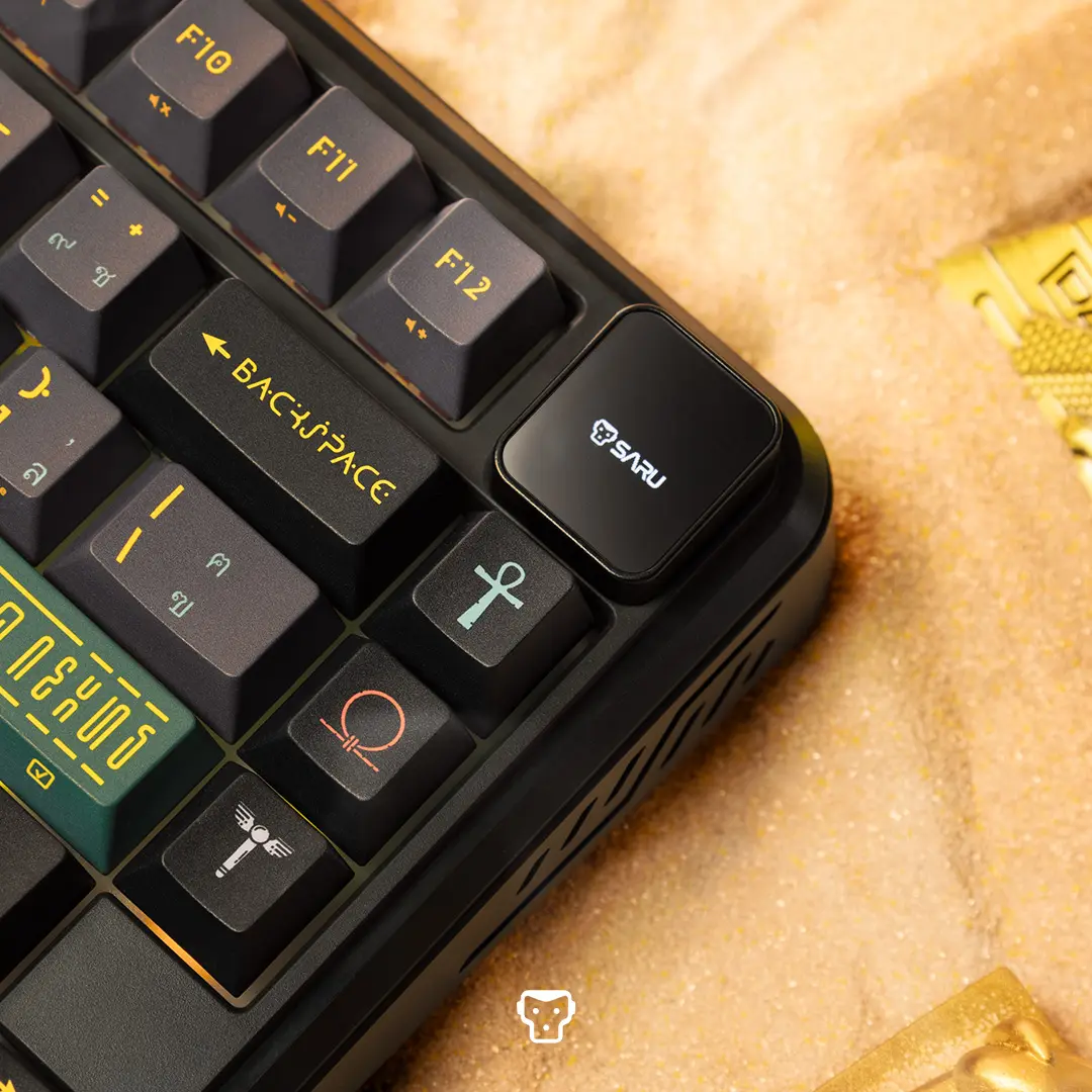 พีระมิดแห่งกีซา ดวงตาแห่งฮอรัส เส้นสายอักขระโบราณที่รายล้อม ถ่ายทอดลงคีย์บอร์ด…สู่ปลายนิ้วของคุณ กับคีย์บอร์ดรุ่น KX79 GIZA NEXUS ขนาด 75% 80 ปุ่ม มาพร้อม จอสี TFT Color Screen มัลติฟังก์ชันในตัว แสดงโหมดการเชื่อมต่อ แบตเตอรี่ เอฟเฟกต์ไฟ RGB แบบเรียลไทม์ คีย์แคป PBT สวิตช์ KTT Hot-Swappable สูงสุด 5 PIN ถอดเปลี่ยนได้ง่ายตอบโจทย์สายคัสตอม โครงสร้าง Gasket ช่วยซับแรงกด พร้อมโฟมลดเสียง ให้สัมผัสนุ่ม เงียบ และเสียงแน่น